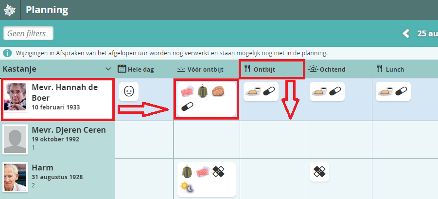 Voor dit overzicht klikt u op een dagdeel (bovenste rij).