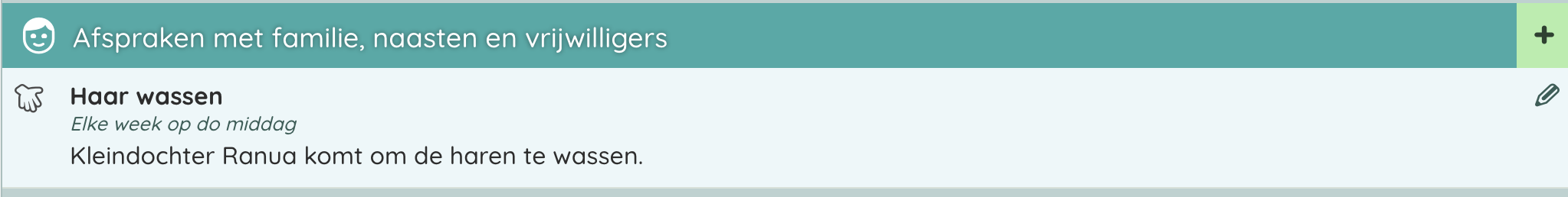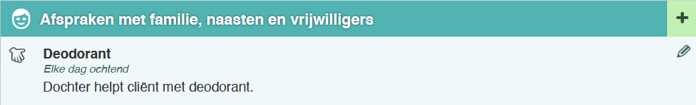 - Klik op de groene '+' (Plus) knop achter 'Afspraken met familie, naasten en vrijwilligers'.