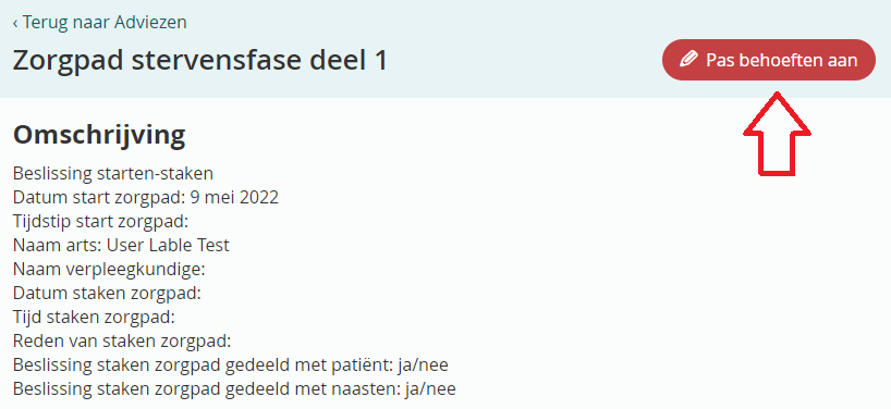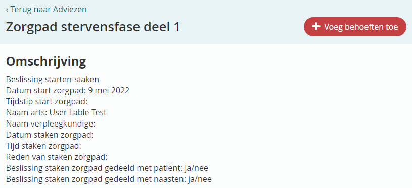 - Selecteer de behoefte waar het advies aan is gekoppeld.