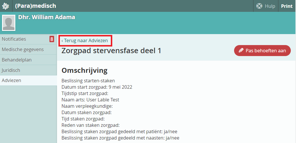 - Klik op de 'Terug naar Adviezen' knop in de linkerbovenhoek.