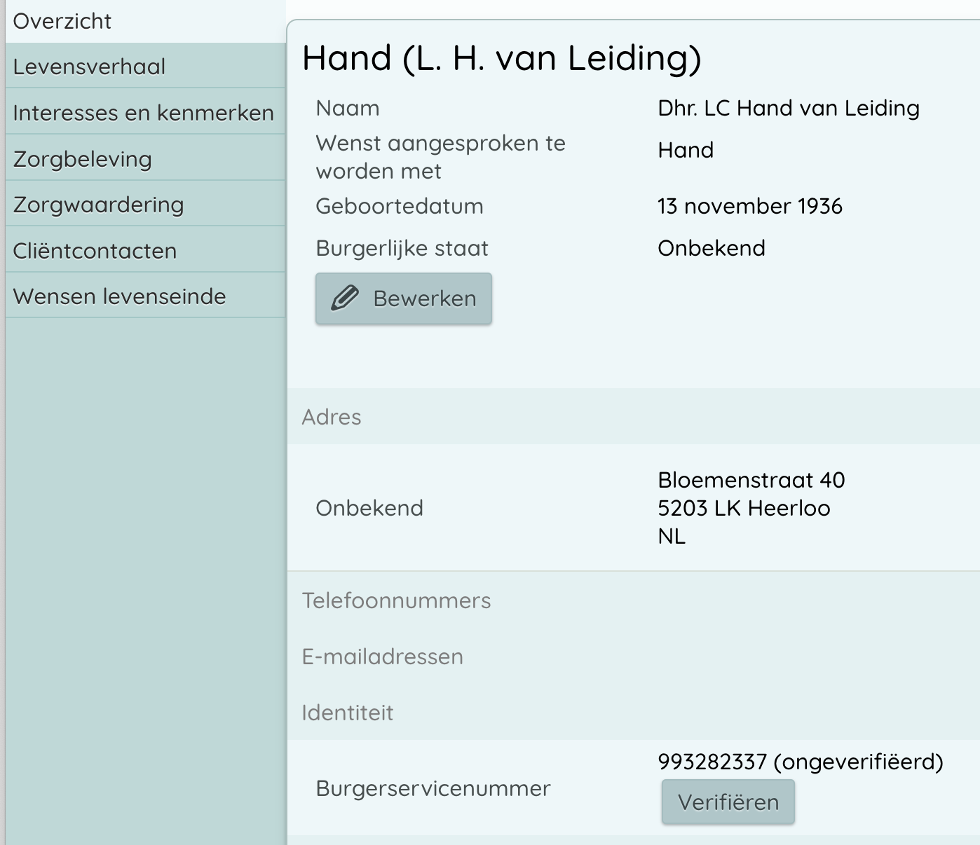 - Klik op de knop 'Verifiëren' bij Burgerservicenummer.