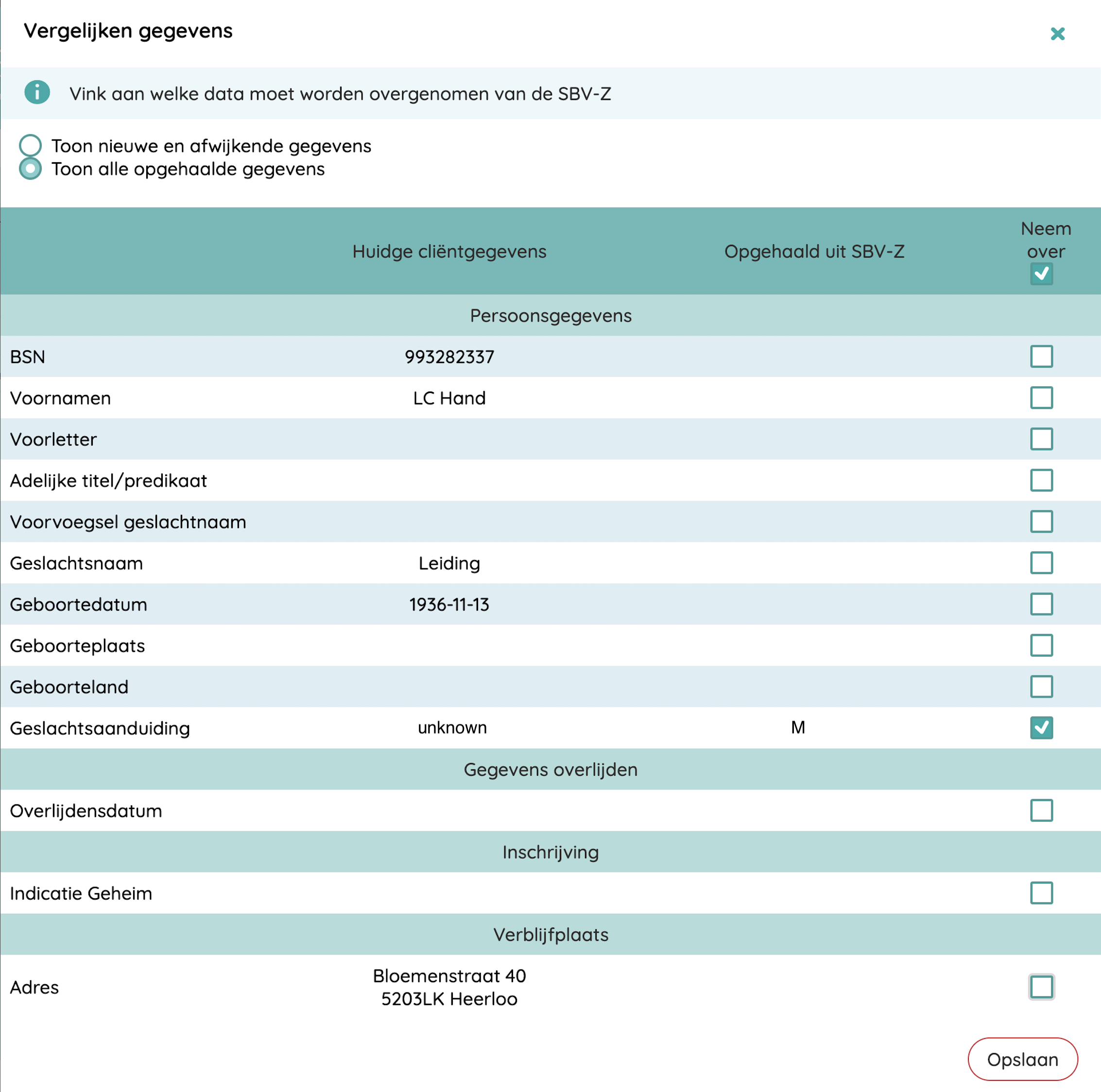 'Profiel' is het mogelijk om het Bugerservicenummer (BSN) te controleren en gegevens over te nemen vanuit het SBV-Z.