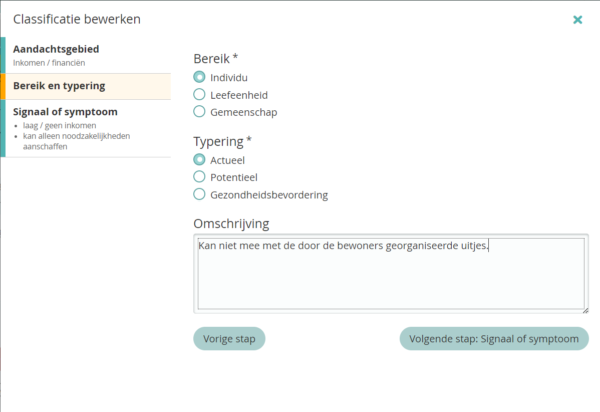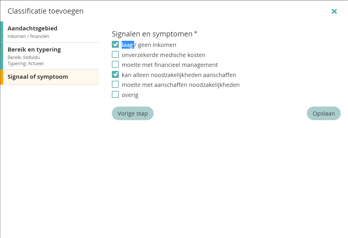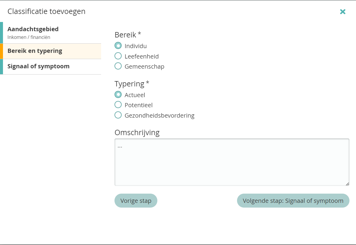 - Klik op de knop 'Volgende stap: Signaal of symptoom'.