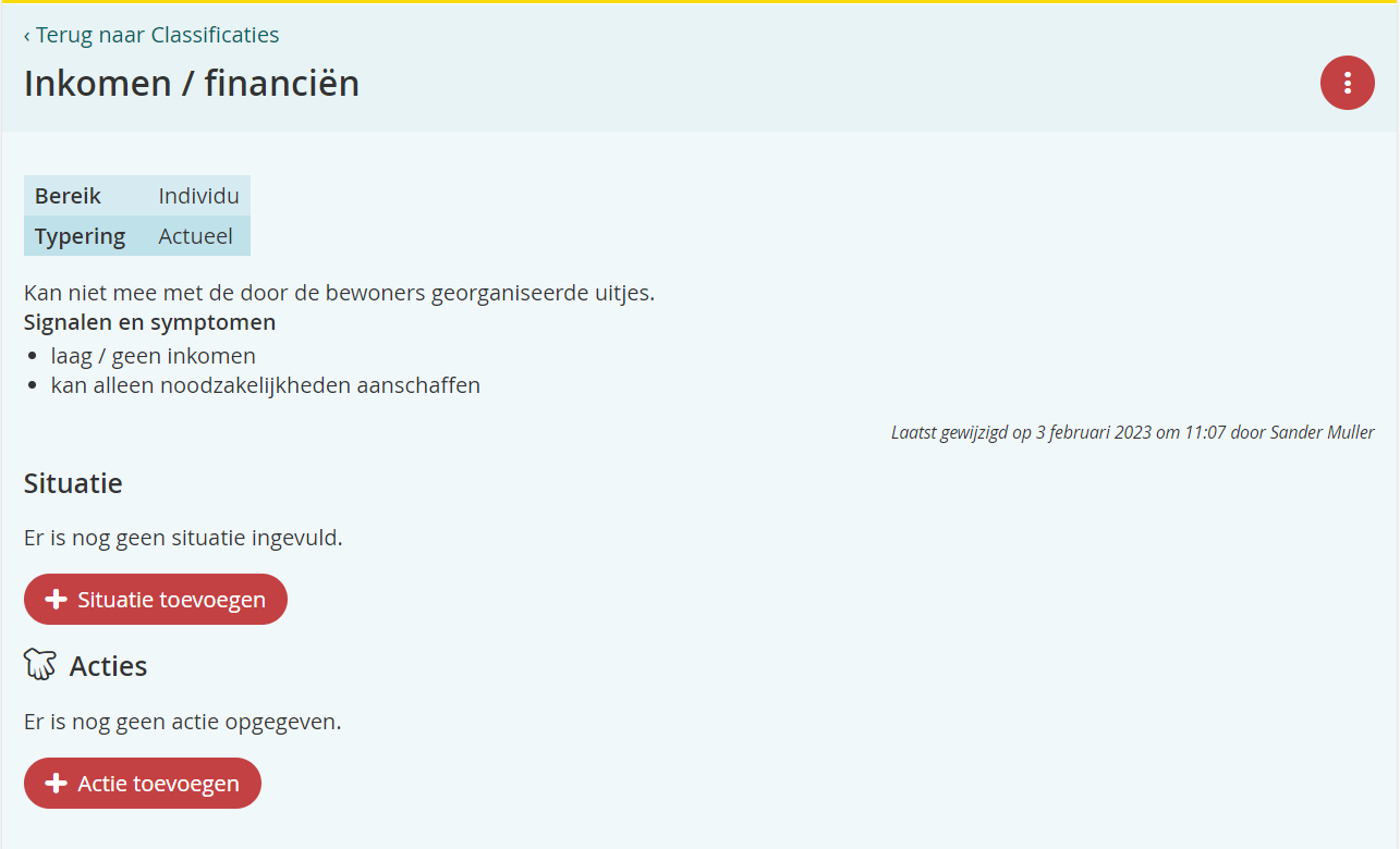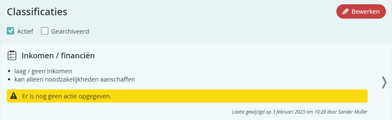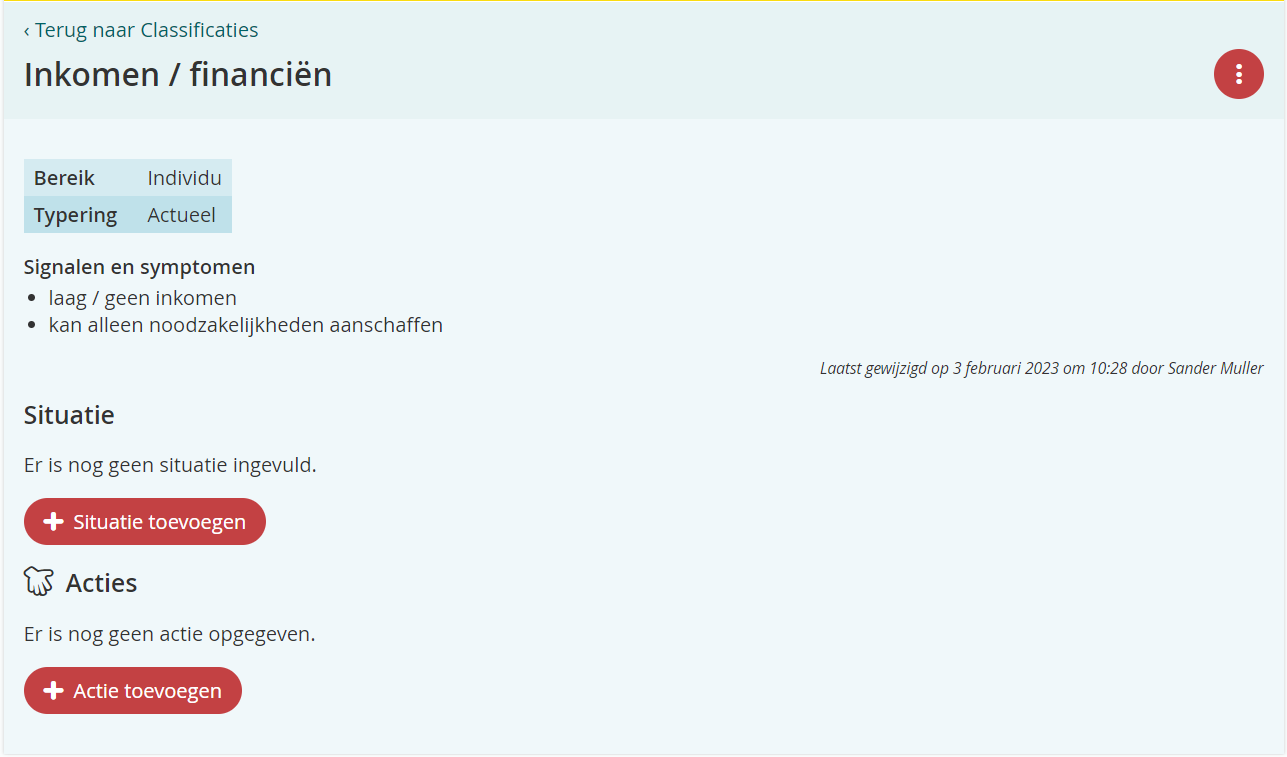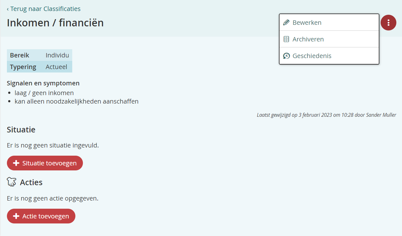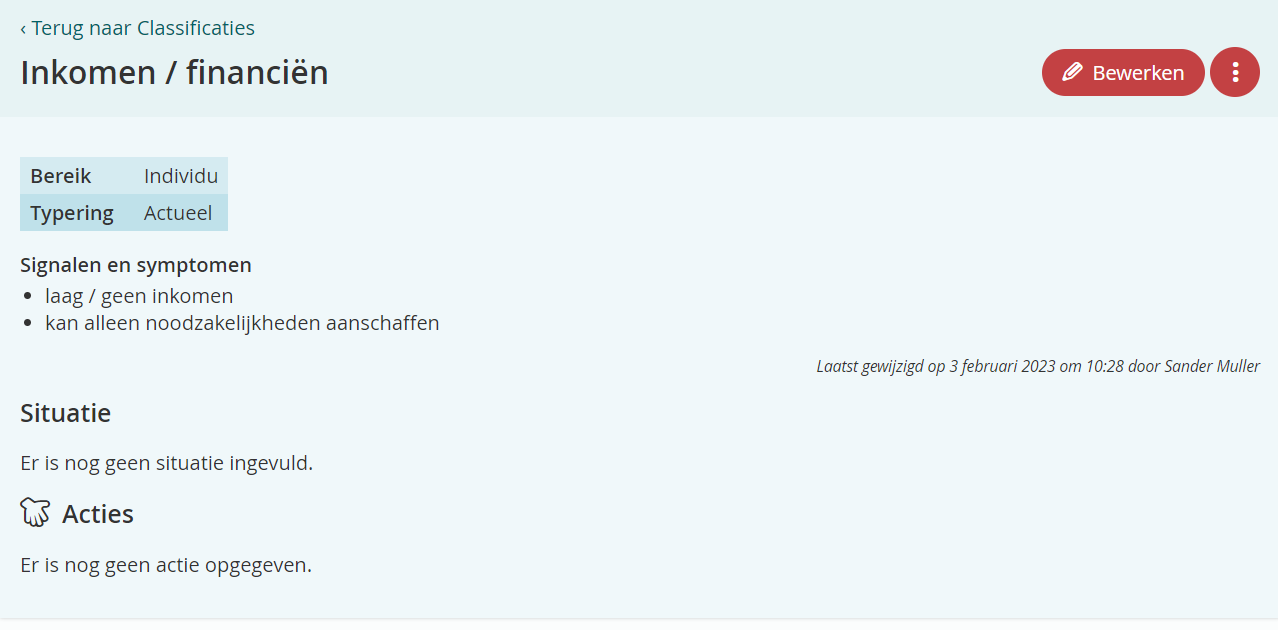 - Klik op de rode 'Bewerken' knop om een classificatie toe te voegen.