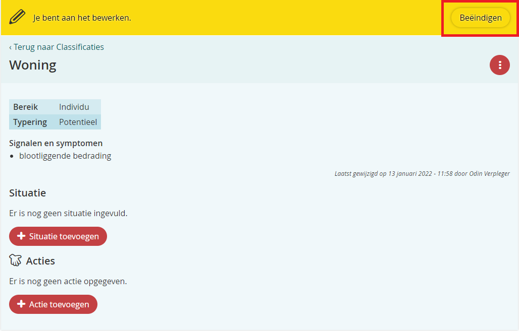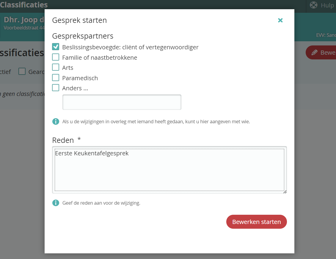 - Geef een reden voor de verandering (Je kunt deze gegevens bij het afsluiten van het gesprek nog bijwerken of aanvullen).