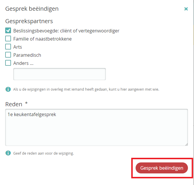 - Klik op de knop 'Gesprek beëindigen'.