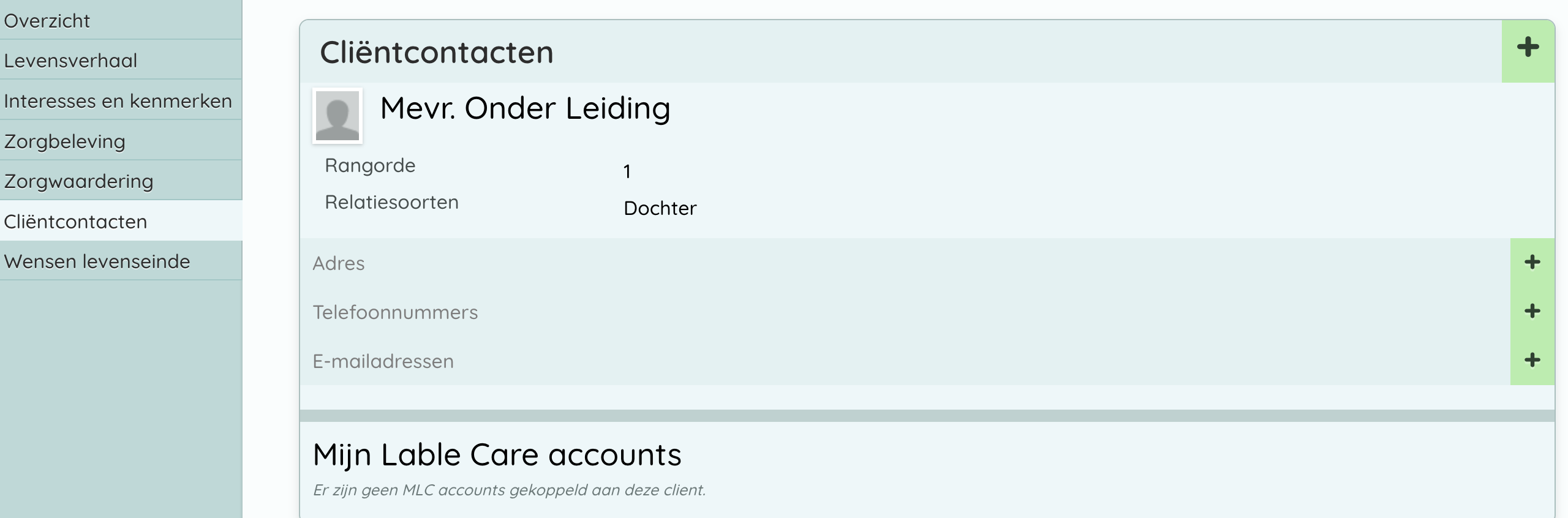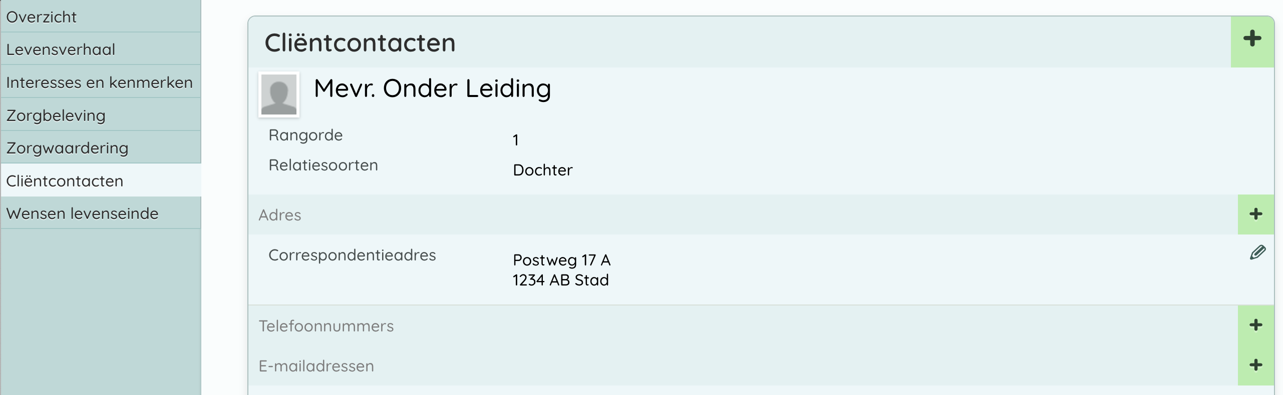 LET OP! We adviseren om de functionaliteit voor het toevoegen en wijzigen alleen te activeren als er geen koppeling met een basisadministratie is voor het vullen van cliëntcontacten. Zie voor meer informatie Cliëntcontacten.