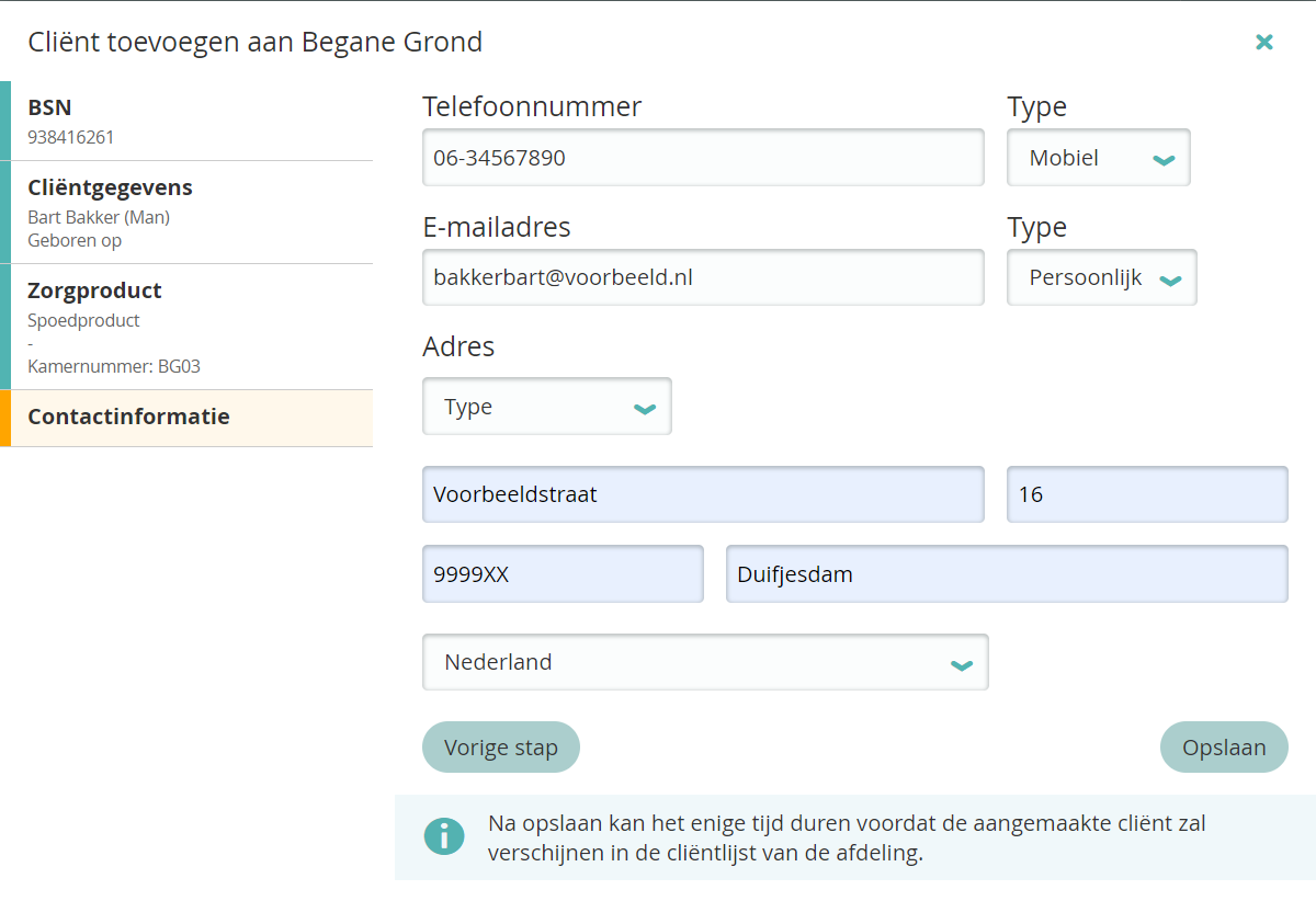 Let op! Heb je een startdatum in de toekomst ingevoerd, dan wordt de cliënt ook pas later getoond in de cliëntlijst.