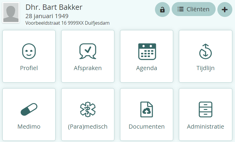 Het dossier van de zojuist aangemaakte cliënt is beschikbaar op de betreffende locatie.
