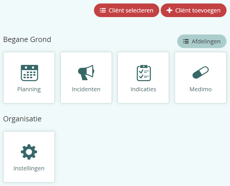 - Klik op 'Selecteer afdeling' in de cliëntlijst.