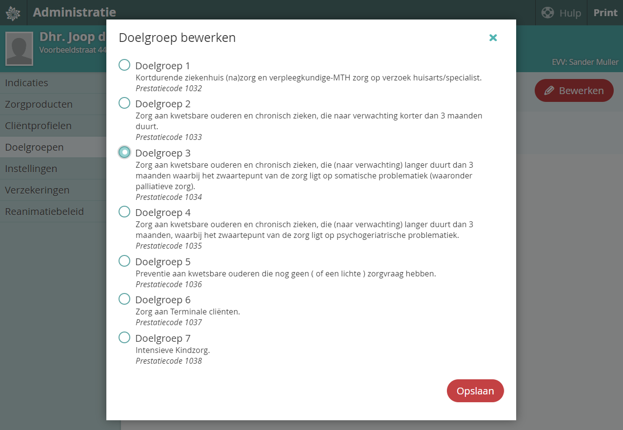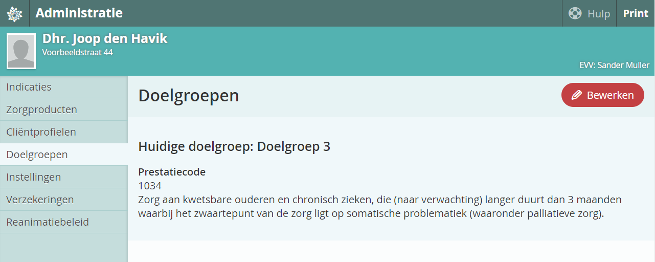 - Onder het kopje 'Doelgroepen' verschijnt het geselecteerde doelgroep.