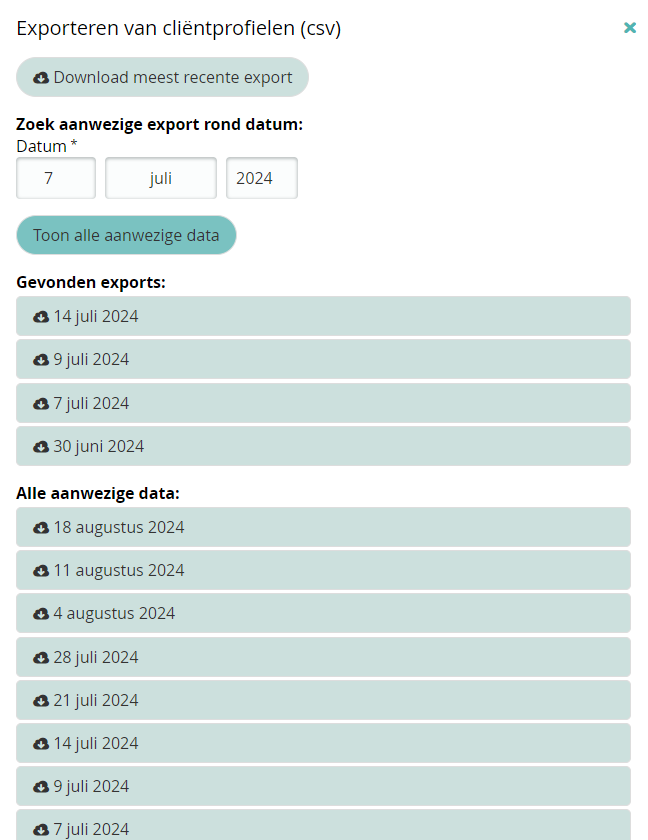 - Export Cliëntprofielen (csv)