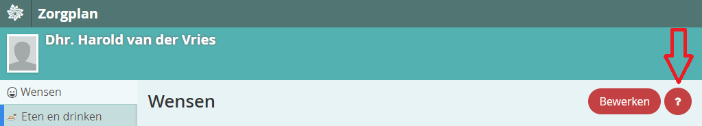 Mijn Lable Care bevat per onderdeel een hulpfunctie. Deze wordt aangeduid met een vraagteken in een bolletje (zie hieronder op de afbeelding).