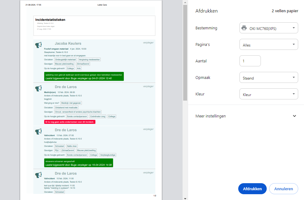 Tip De tegel 'Incidenten' toont nu alle incidenten van de onderliggende afdelingen/teams. Hierdoor is het mogelijk om bijvoorbeeld alle incidenten van één hoofdlocatie te zien en te printen.