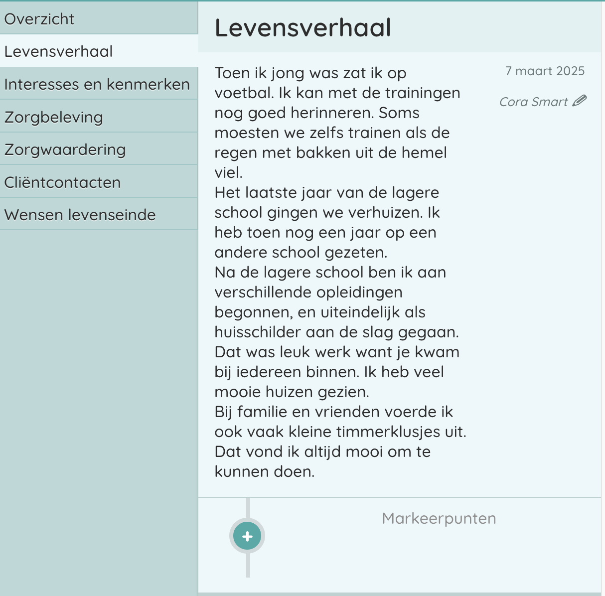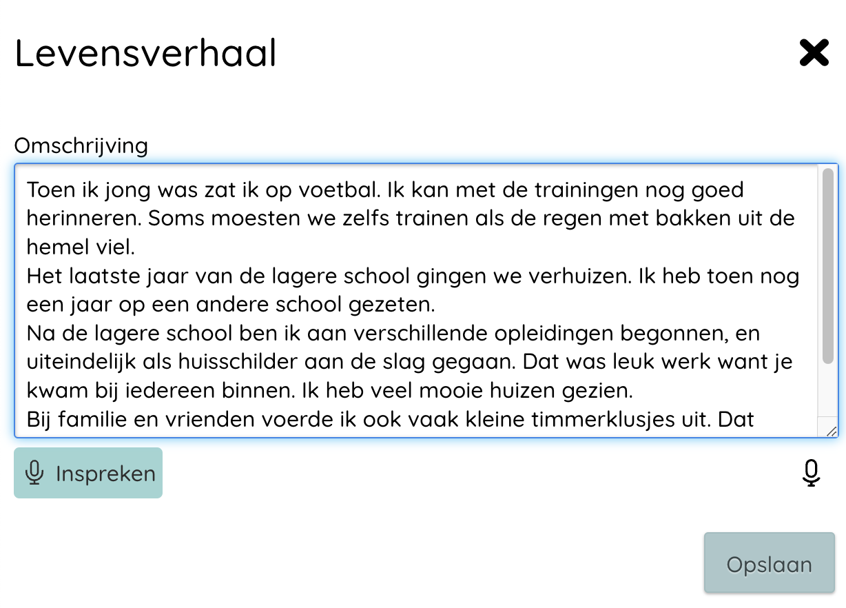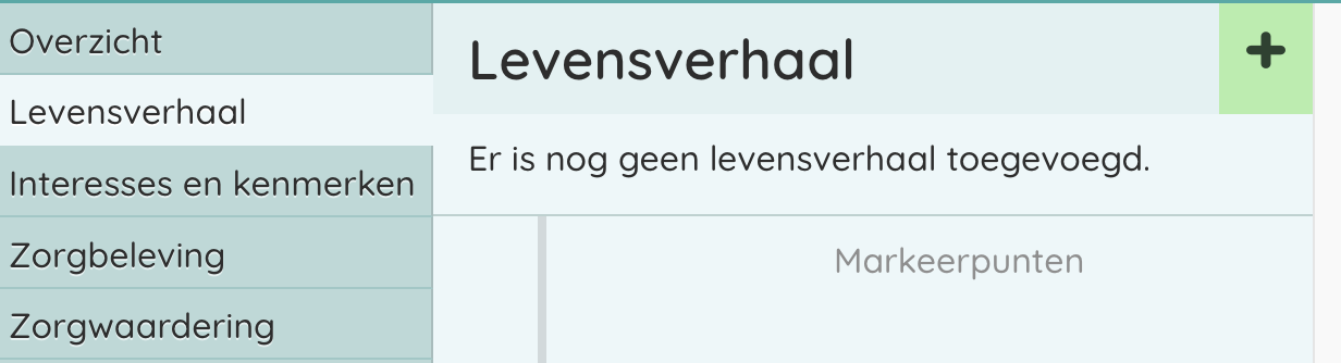 - Gebruik de +knop om de tekst voor het Levensverhaal toe te voegen.