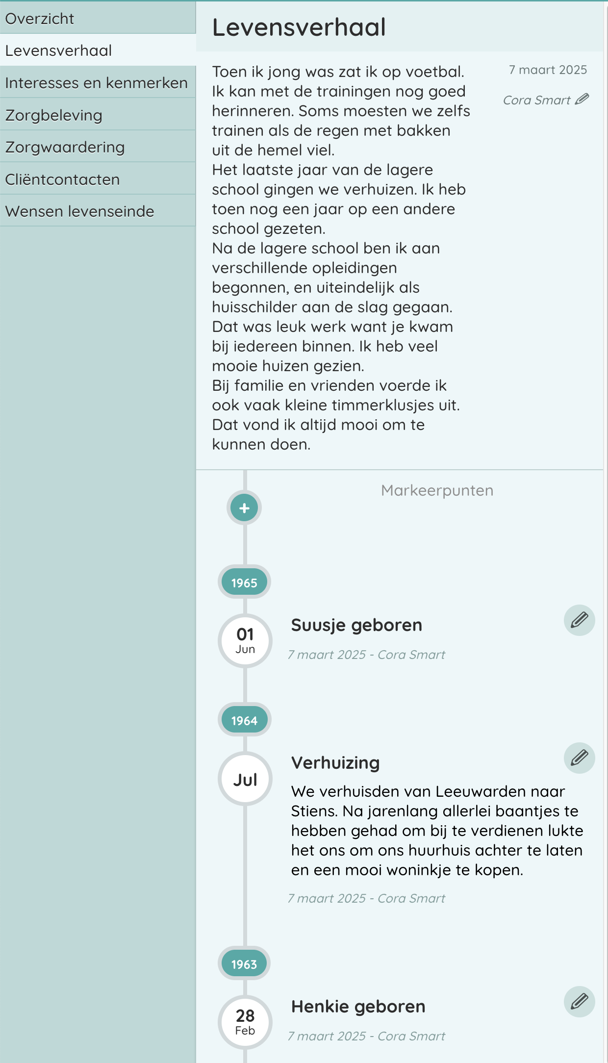 - Voeg alle voor de cliënt belangrijke momenten toe.