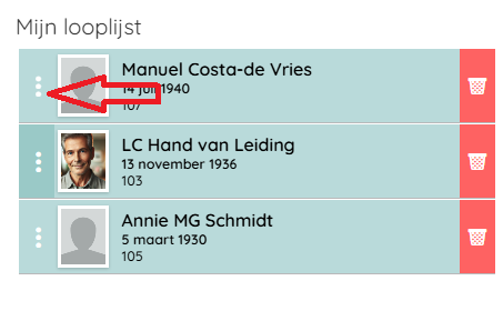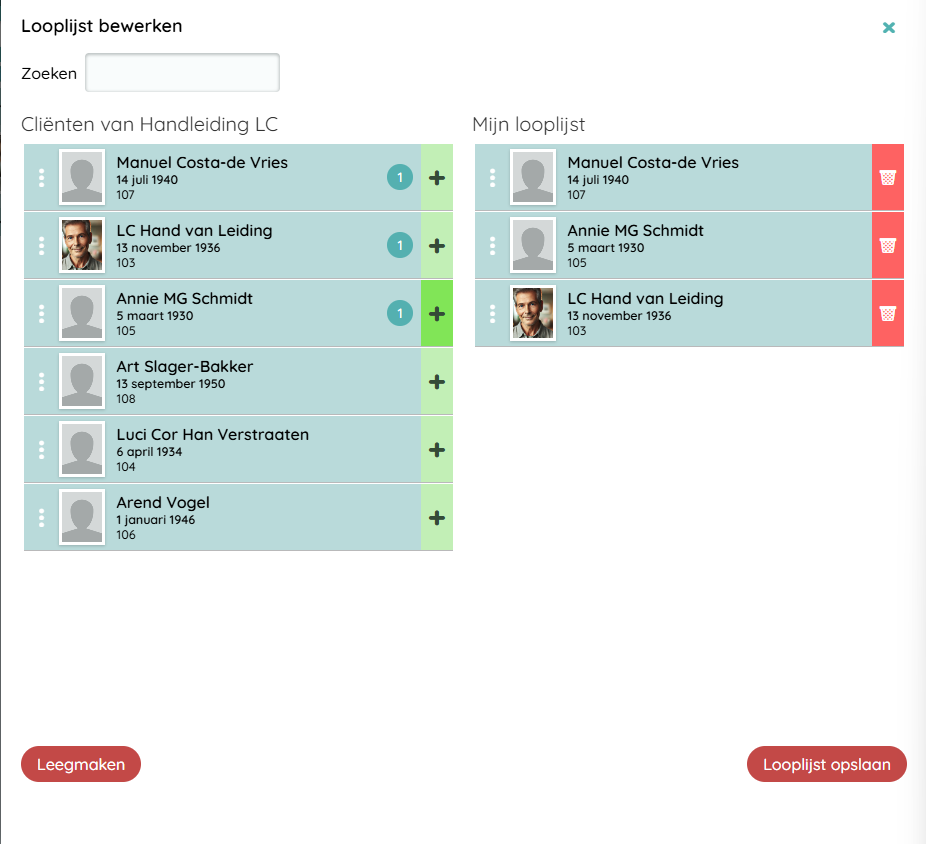 - Om een cliënt te verwijderen uit je looplijst, klik je op het prullenmandje rechst van de cliënt naam.