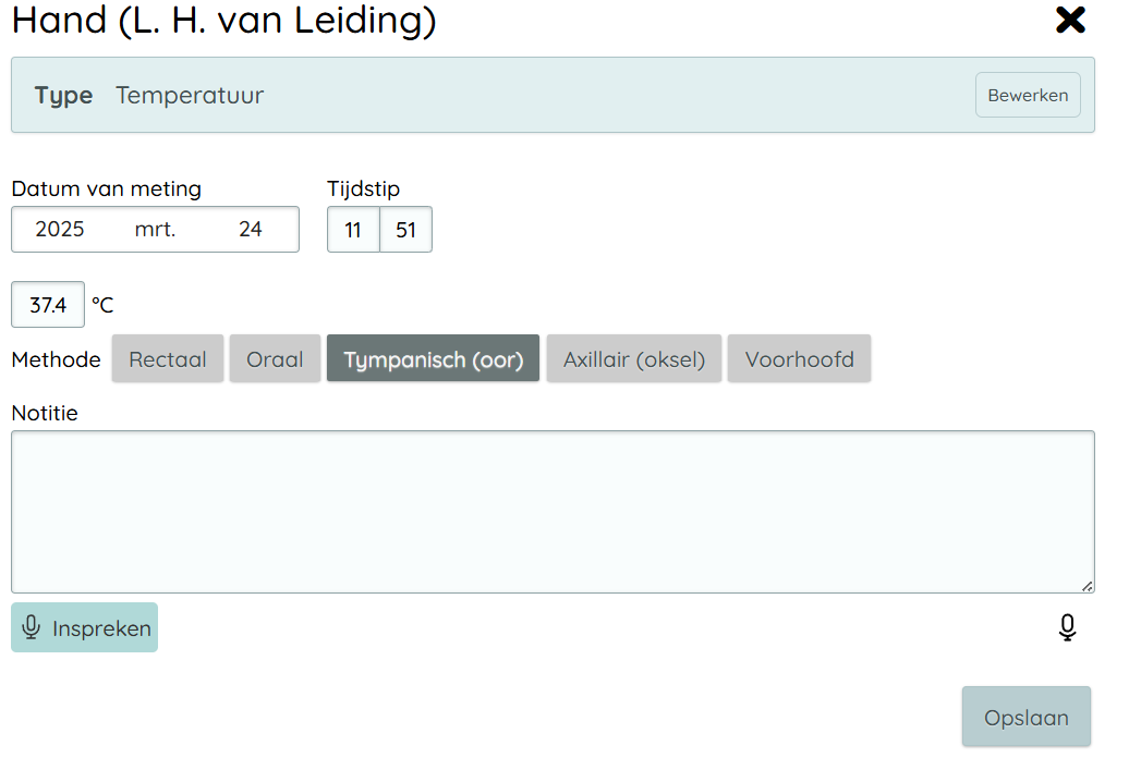 - Vul de gegevens in en voorzie de meting zo nodig van een aantekening en klik op 'Opslaan'.