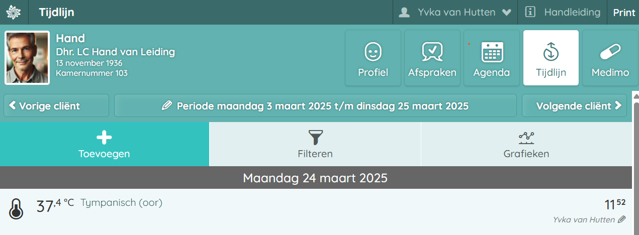 - De ingevulde waarde van de meting wordt getoond op de 'Tijdlijn'.