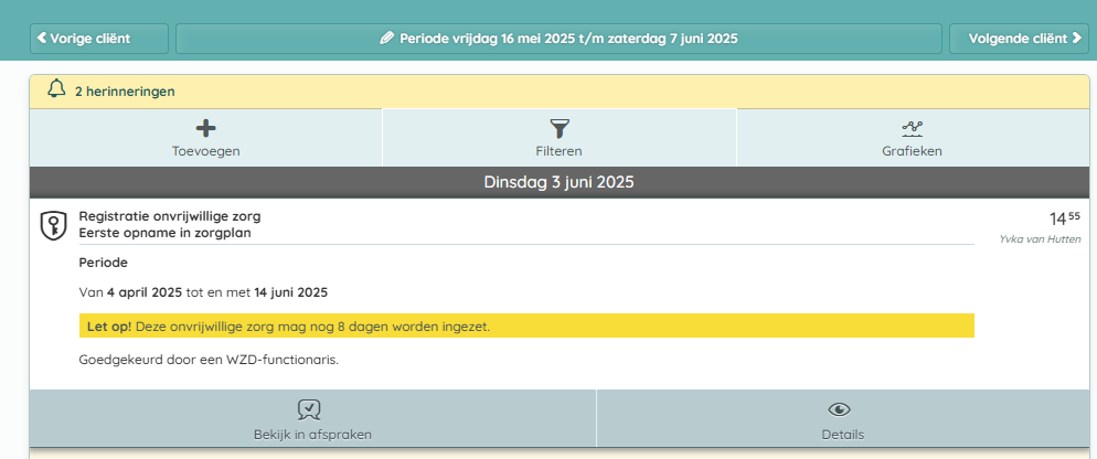 Details inzien van de rapportage onvrijwillige zorg