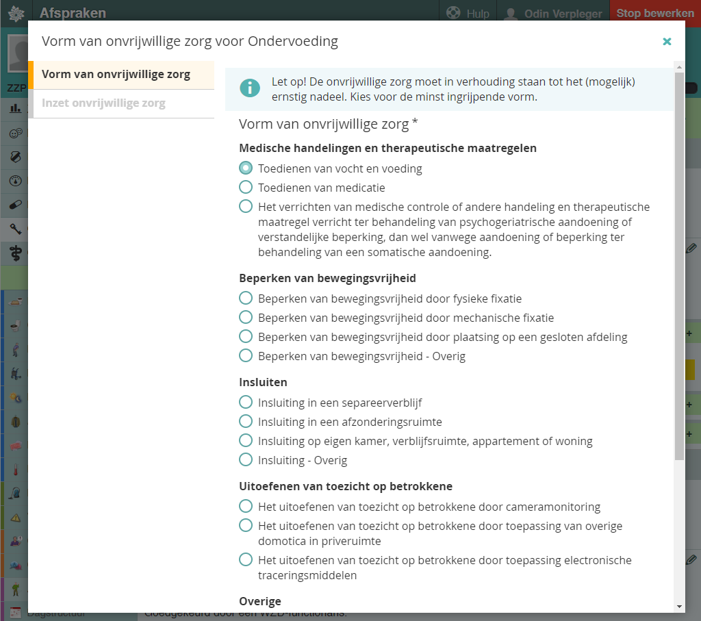 Onvrijwillige zorg: vorm van onvrijwillige zorg toevoegen