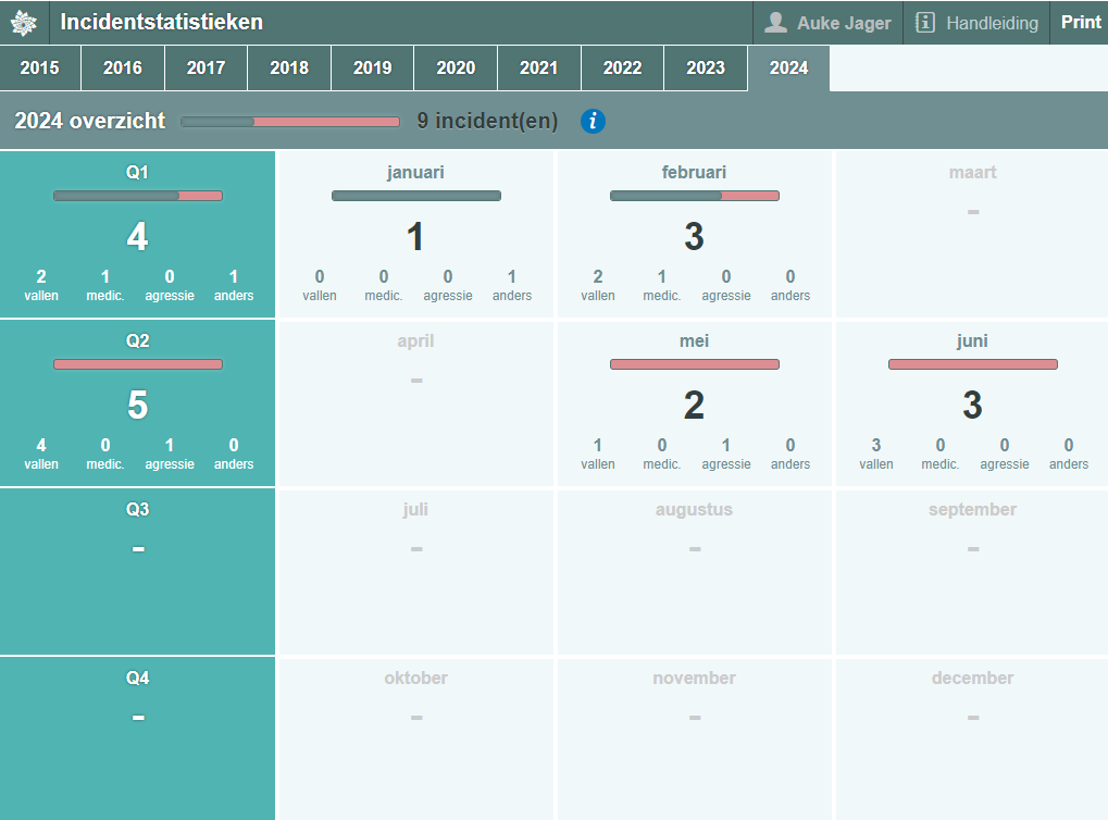 Kies de maand of het kwartaal die je wilt bekijken en er wordt een overzicht getoond van de meldingen uit die periode.
