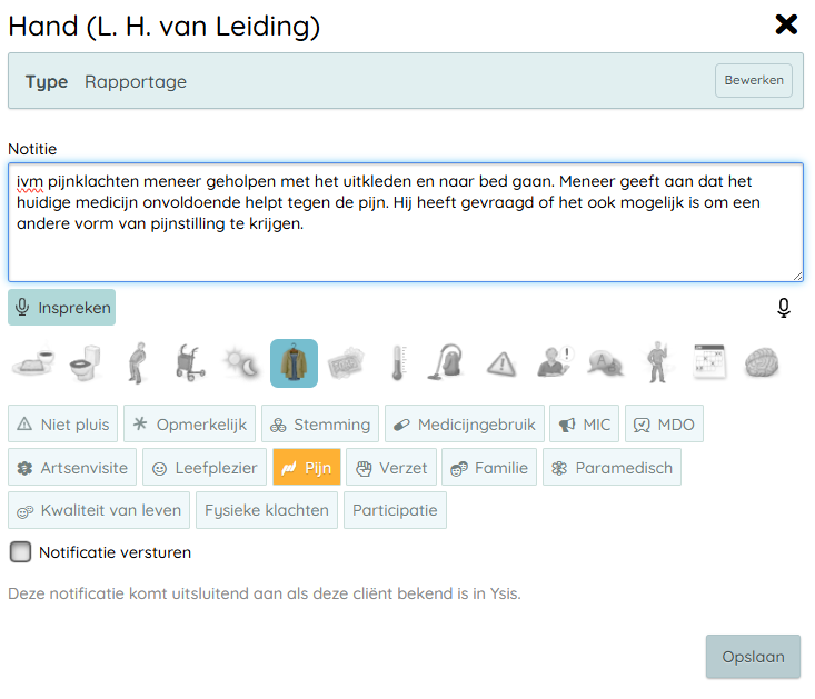 Een van de onderdelen op de 'Tijdlijn' is de 'Rapportage'. Door een bericht toe te voegen worden andere gebruikers (ook die van Mijn Lable Care) op de hoogte gehouden van eventuele bijzonderheden. Een 'Rapportage' kan gekoppeld worden aan een of meerdere CDS basisbehoefte(s), extra zorgbehoefte(s) of vaste tekst labels. Hierdoor kunnen de rapportages over een bepaald onderwerp sneller worden terug gevonden.