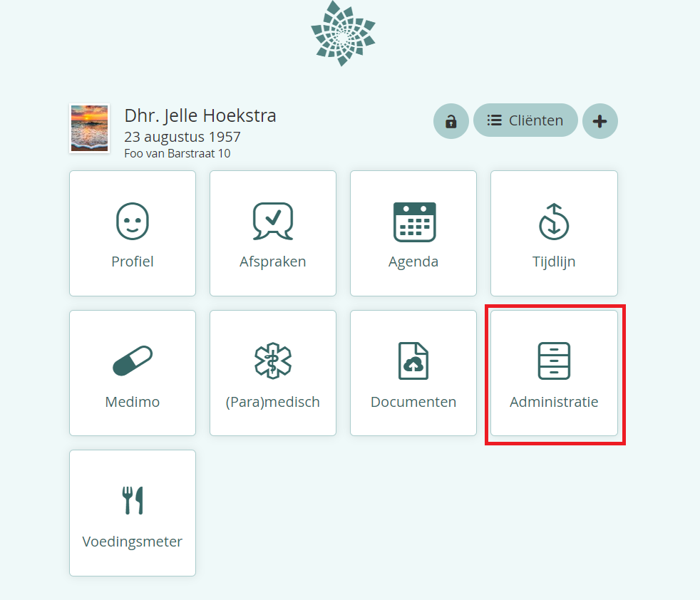 - Ga via het hoofdmenu naar de 'Administratie' van de cliënt.