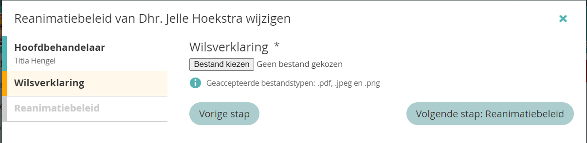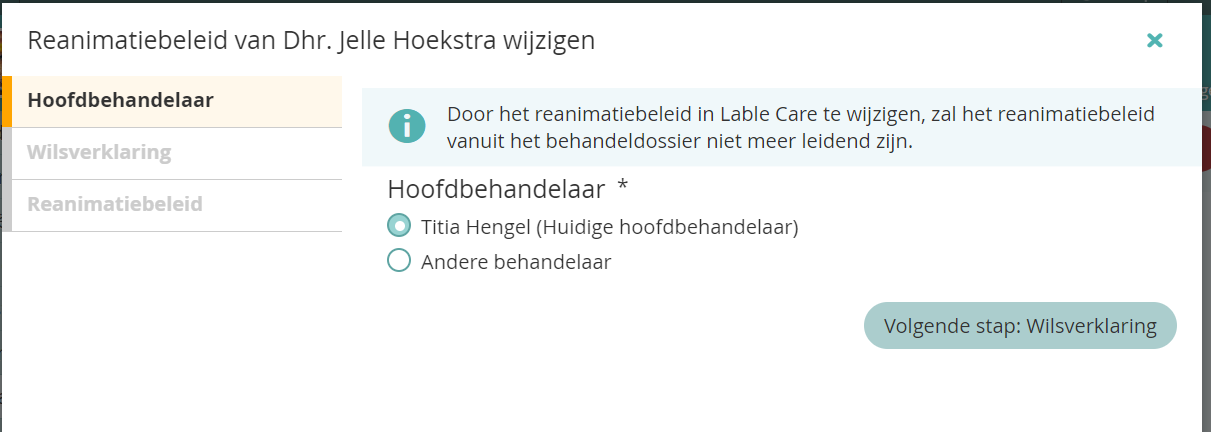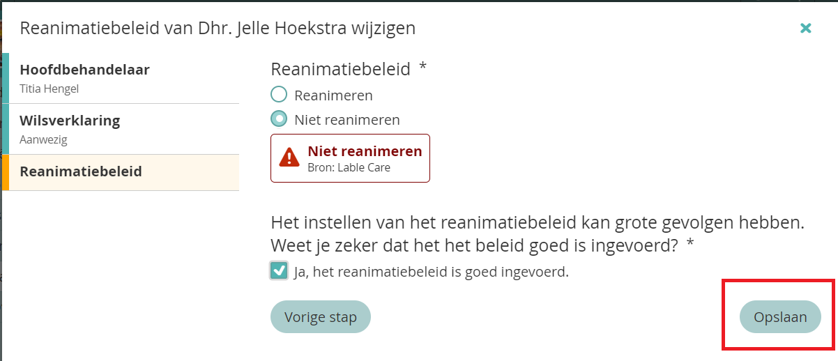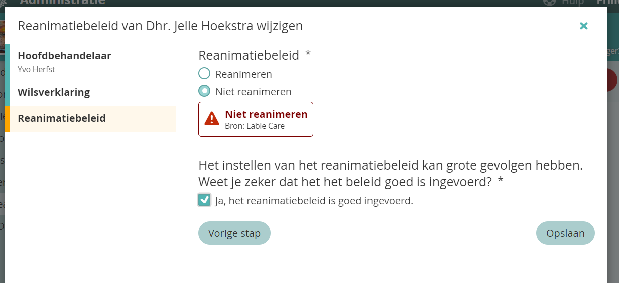 - Klik op 'Volgende stap: Reanimatiebeleid'.