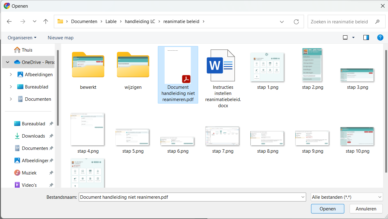 - Selecteer het bestand met de reanimatieverklaring van de client en klik op 'Openen'.
