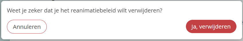 - Er wordt gevraagd of je zeker weet of je het reanimatiebeleid wilt verwijderen. Klik op 'Ja, verwijderen'.