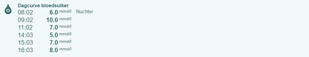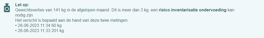 Voor een aantal metingen zijn er 'Samenvattingen' beschikbaar. Deze worden meestal getoond als er 2 of meer metingen van de betreffende meting zijn uitgevoerd op een dag of over een bepaald tijdvak.Samenvatting: Sterke afname gewicht