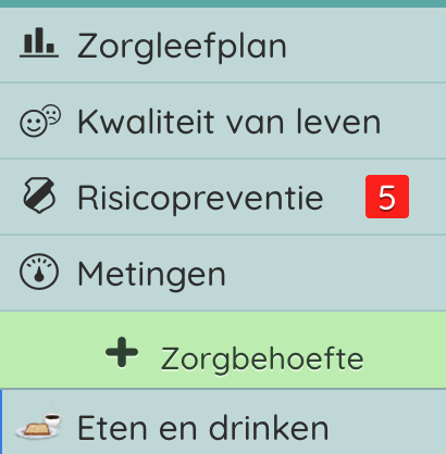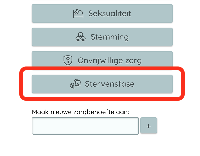 Let op! De 'Zorgbehoefte Stervensfase' mag enkel worden toegevoegd in opdracht van de arts.