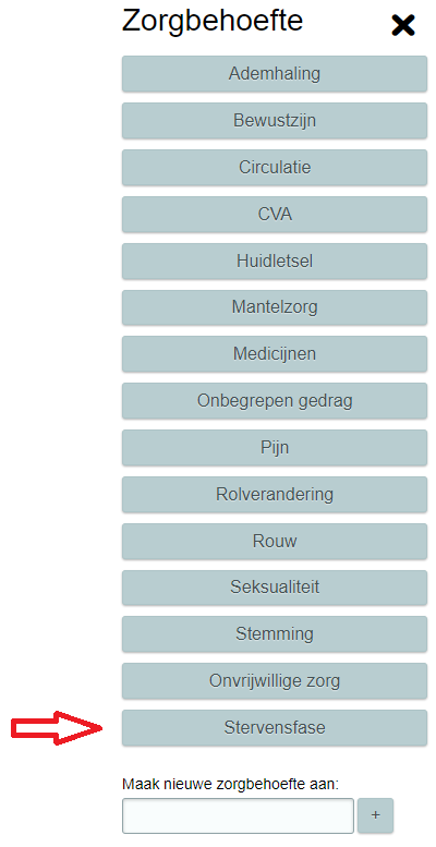 - Daarna komt u in het overzicht van de 'Zorgbehoefte Stervensfase' terecht.
