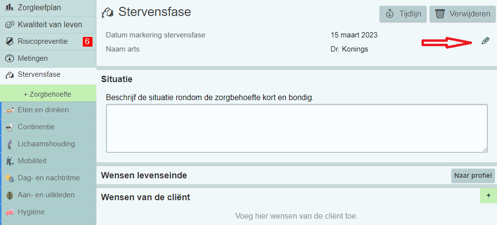 Zorgbehoefte stervensfase bewerken