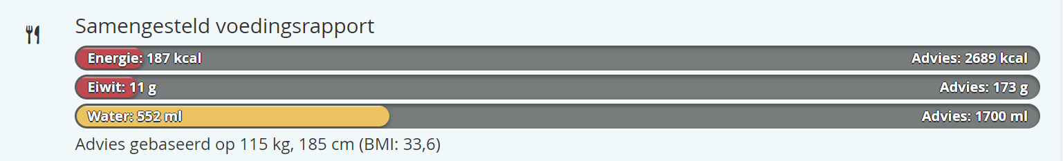 - En uiteindelijk komt er een 'Samengesteld voedingsrapport' in beeld (ook op de 'Tijdlijn').