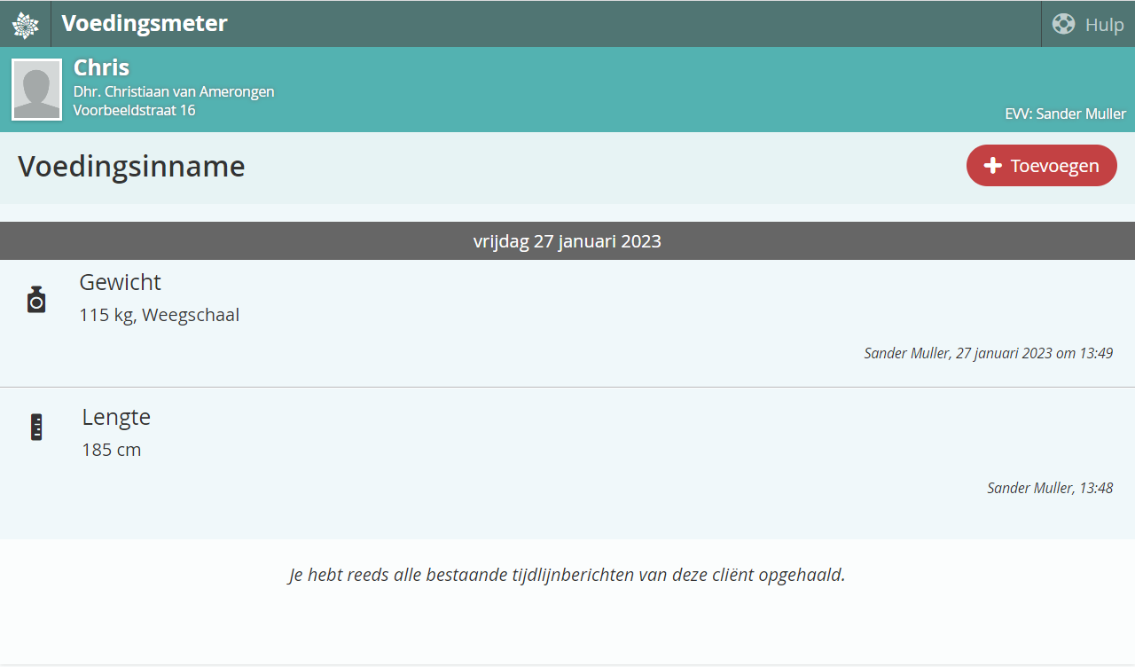 - Ga via het hoofdmenu naar de 'Voedingsmeter' van de cliënt.