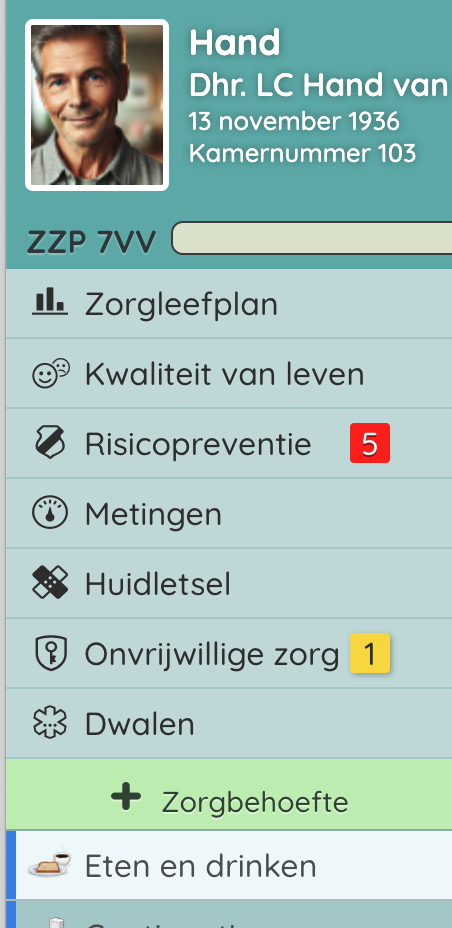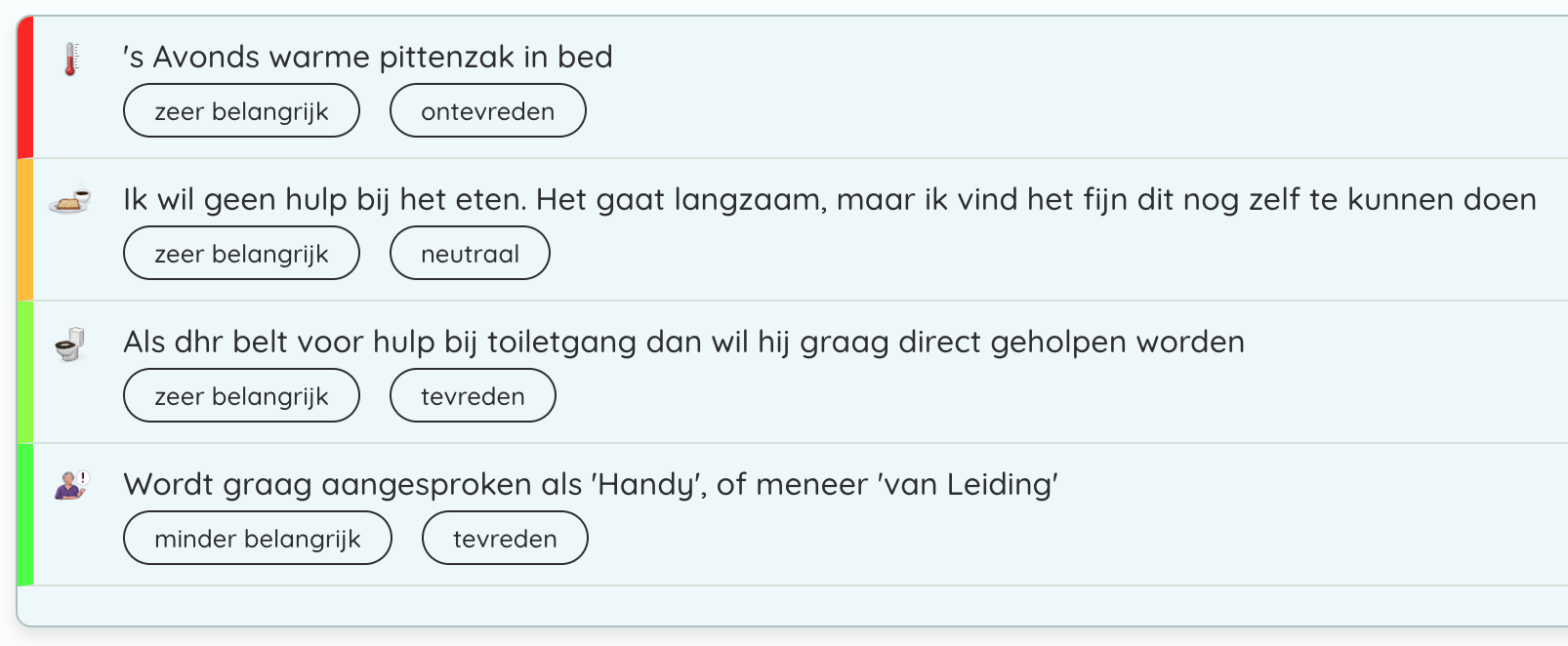 Een overzicht van alle wensen van de cliënt wordt getoond onder het onderdeel 'Kwaliteit van leven', linksboven in het scherm.