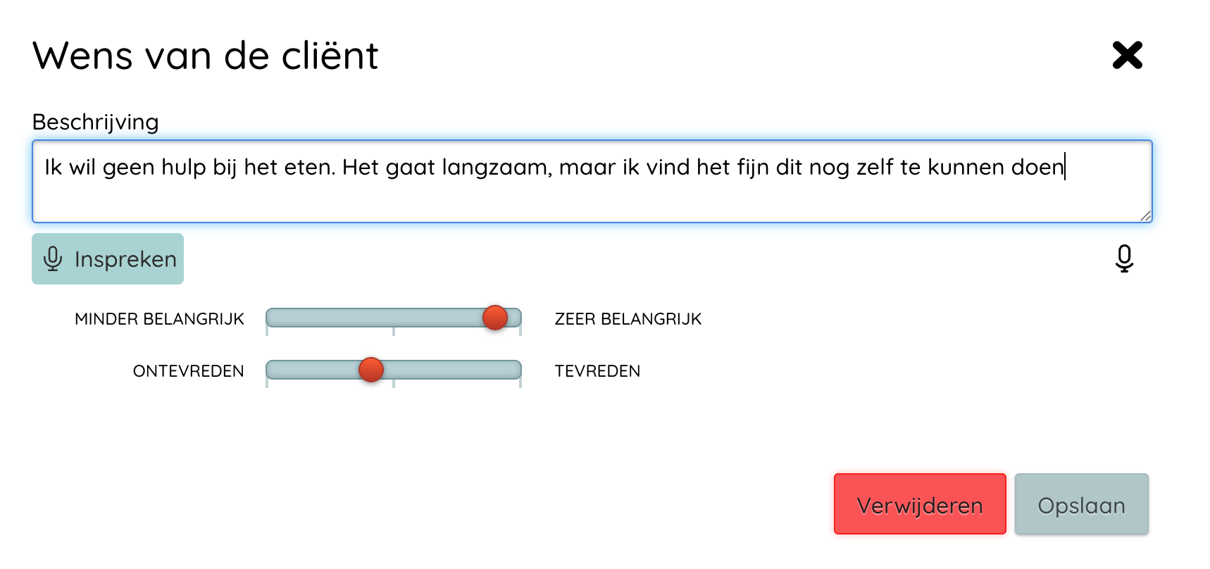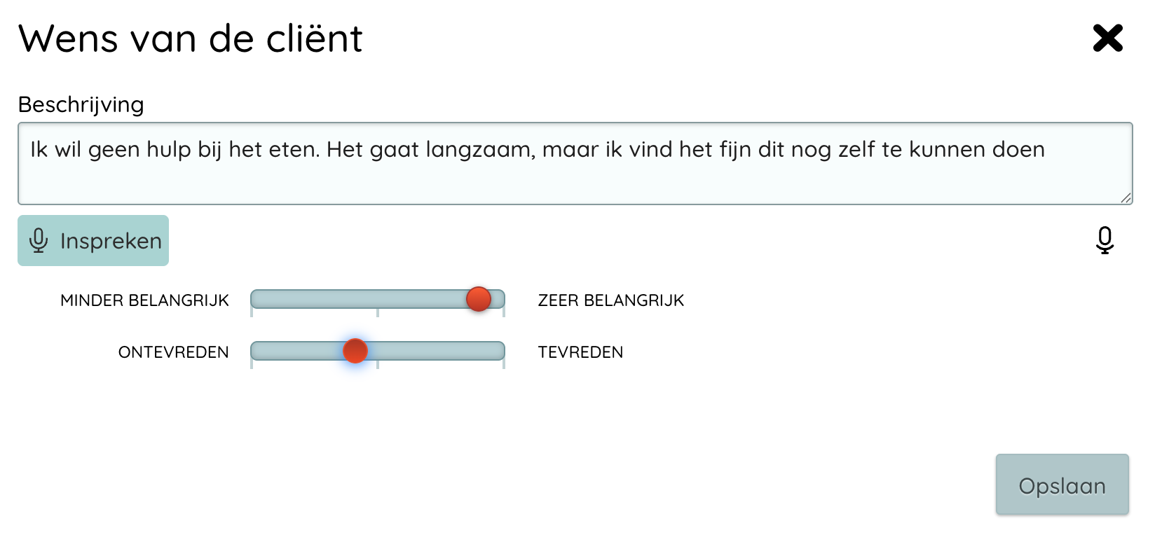 - Geef aan hoe belangrijk deze wens voor de cliënt is, door het bolletje te verslepen.