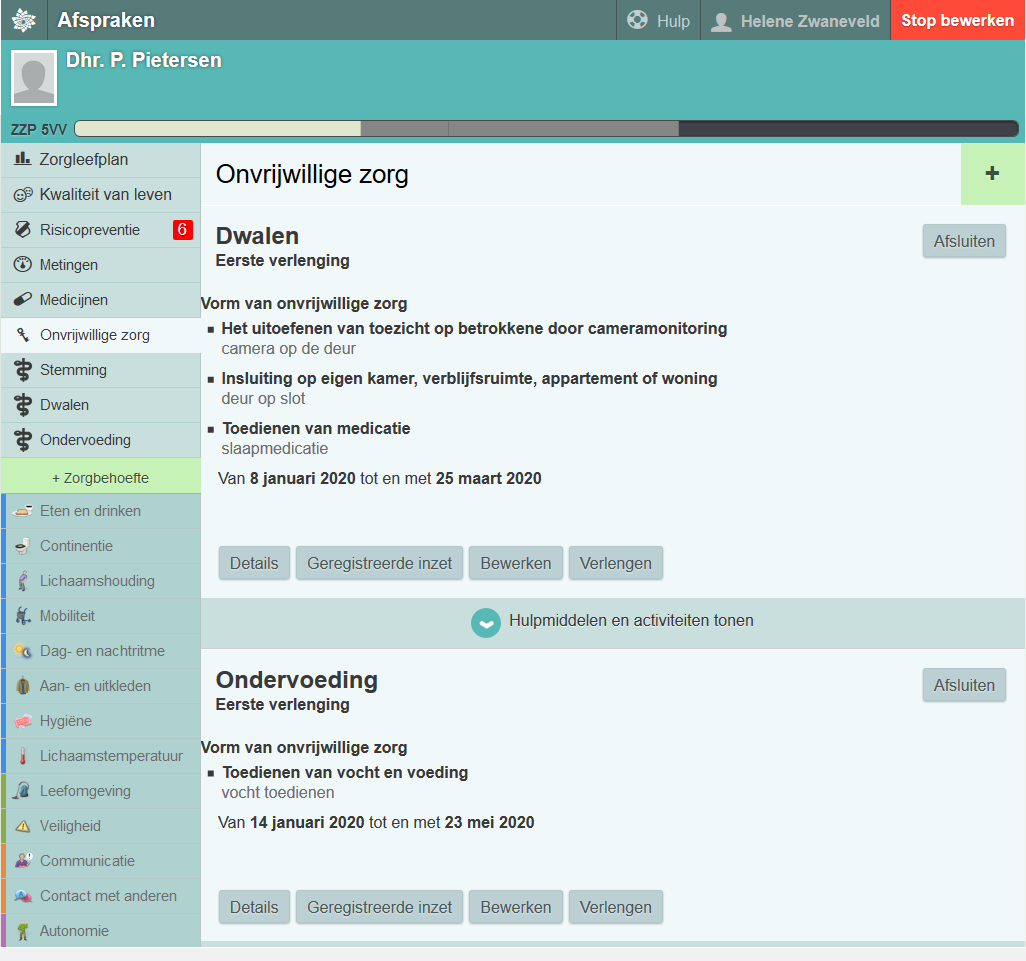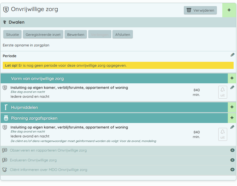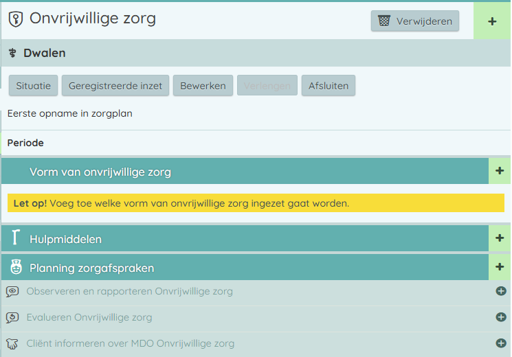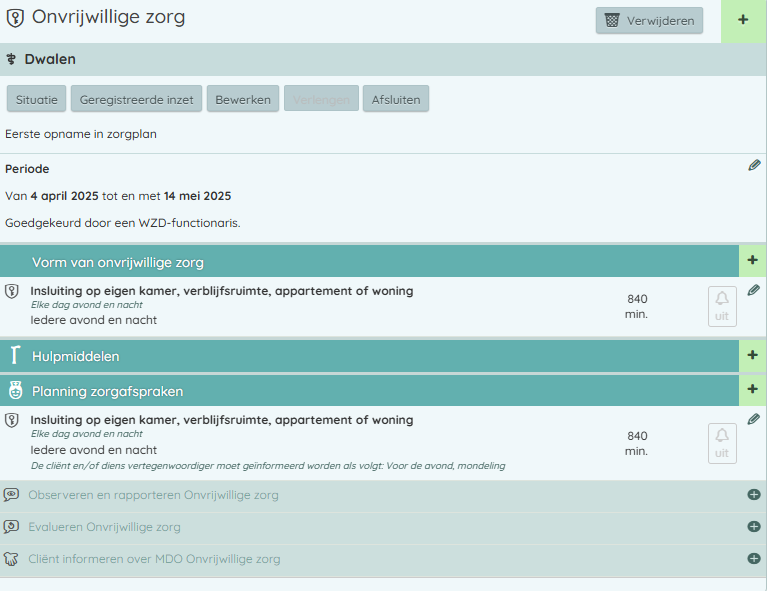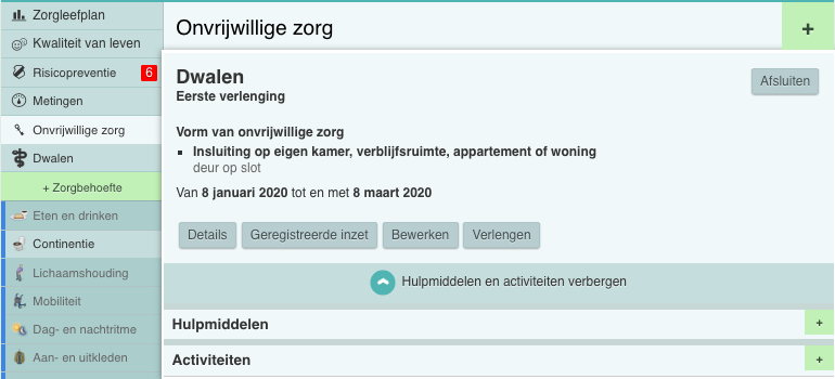 Activiteiten onvrijwillige zorg inplannen en hulpmiddelen toevoegen