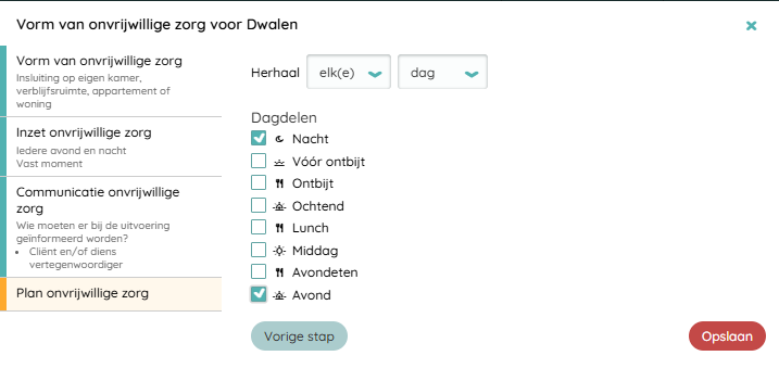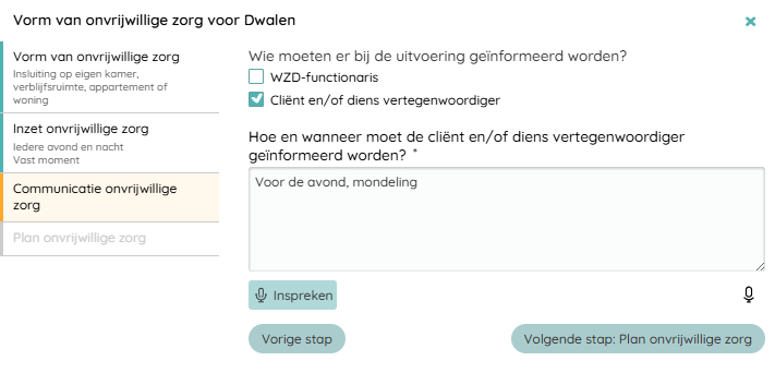 - Klik op 'Volgende stap: Plan onvrijwillige zorg'