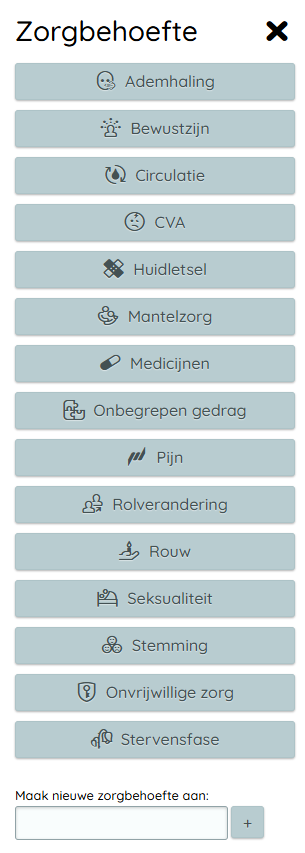 - Ga naar de tegel 'Afspraken' en klik op '+ Zorgbehoeften'.