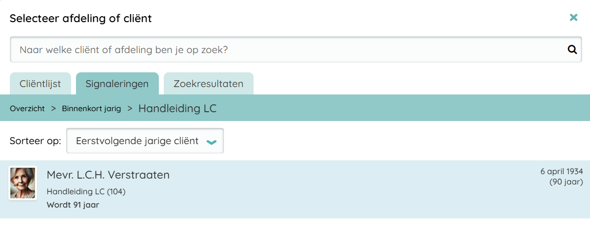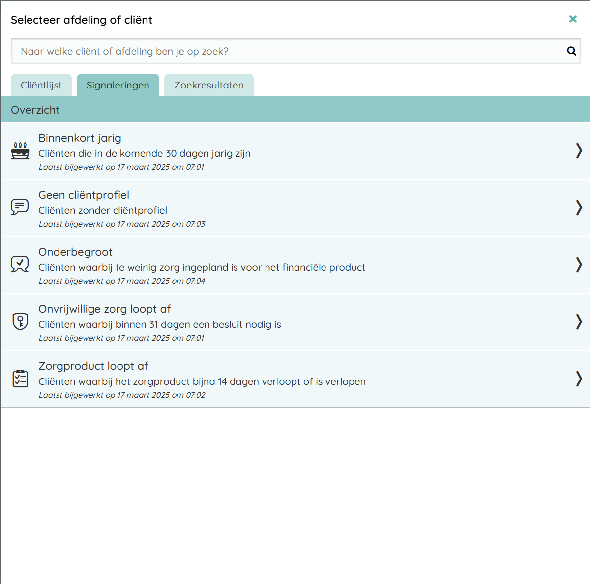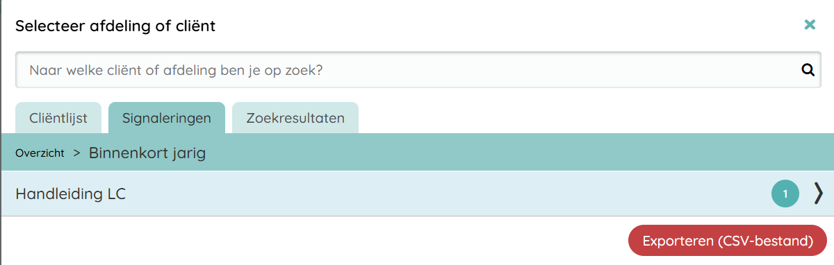 - Je krijgt nu een overzicht van te zien van de cliënten met die signalering.