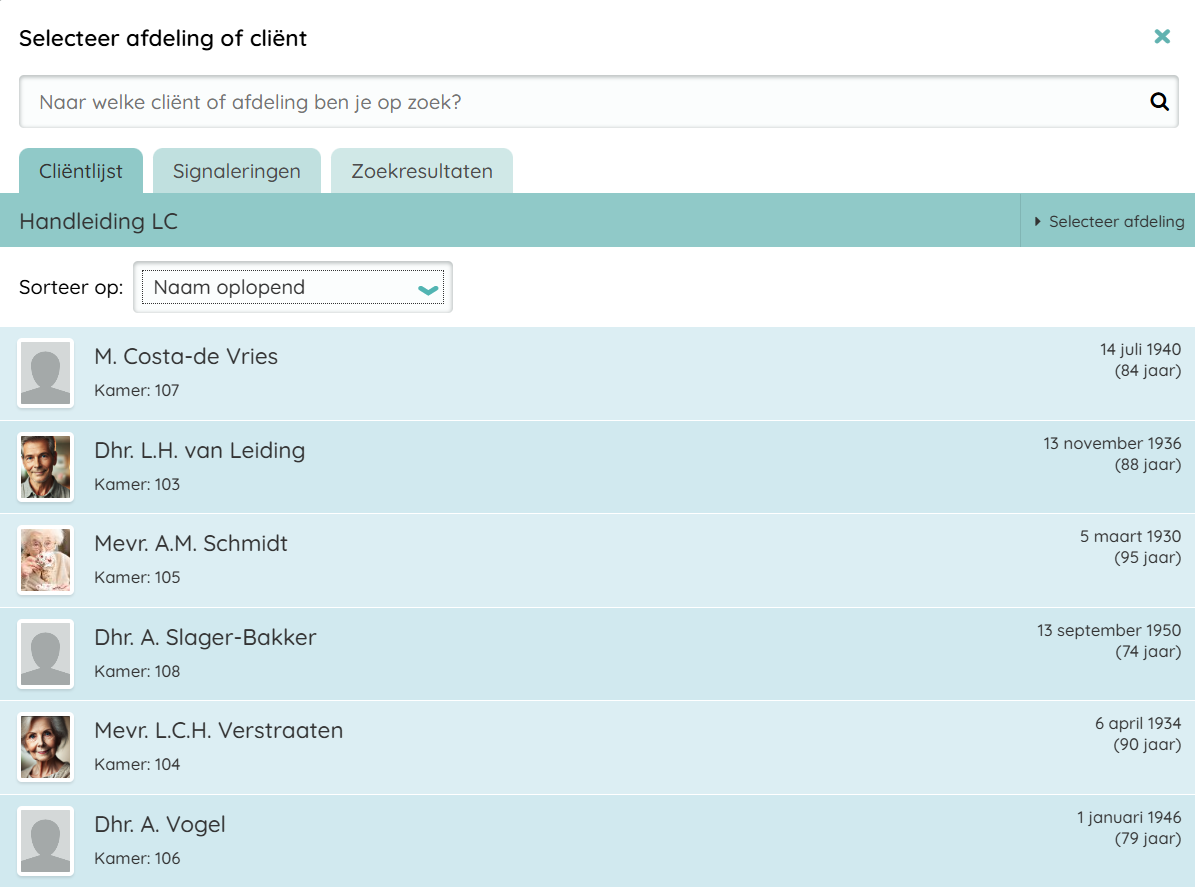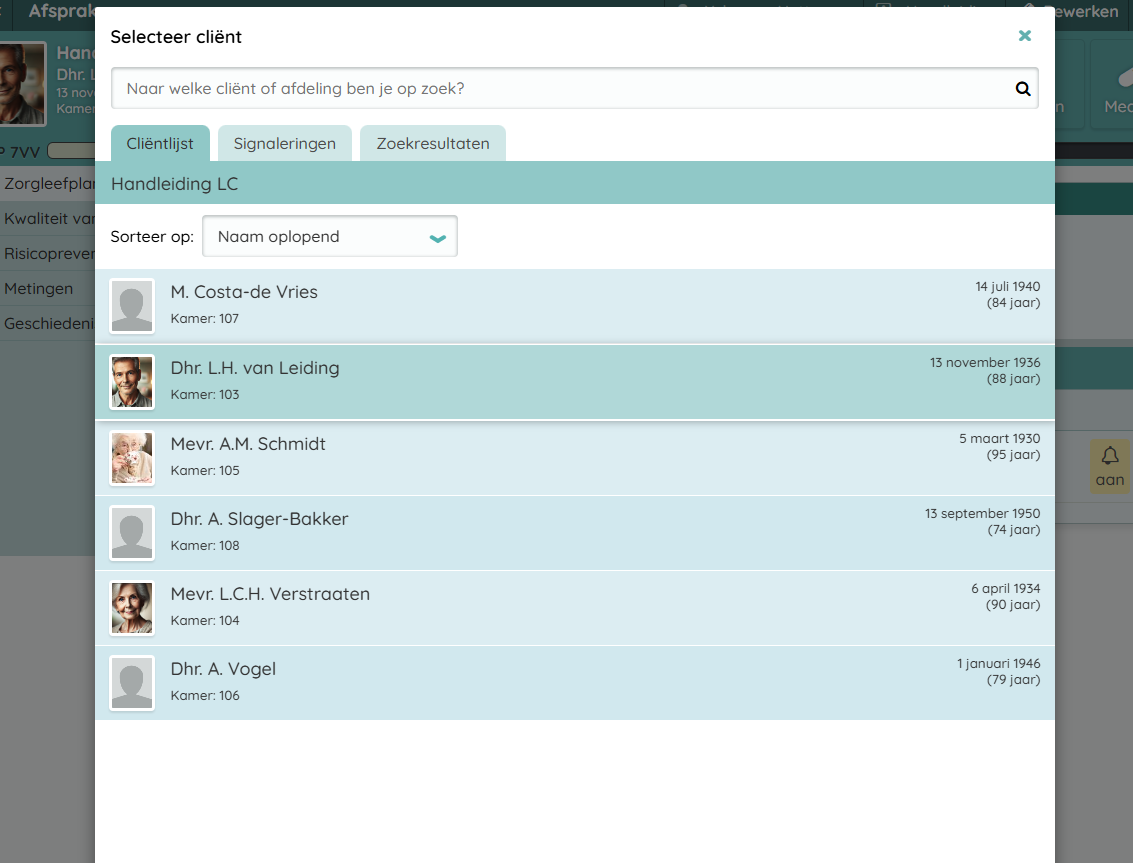 - Selecteer nu de cliënt waarvan je het dossier wilt inzien.