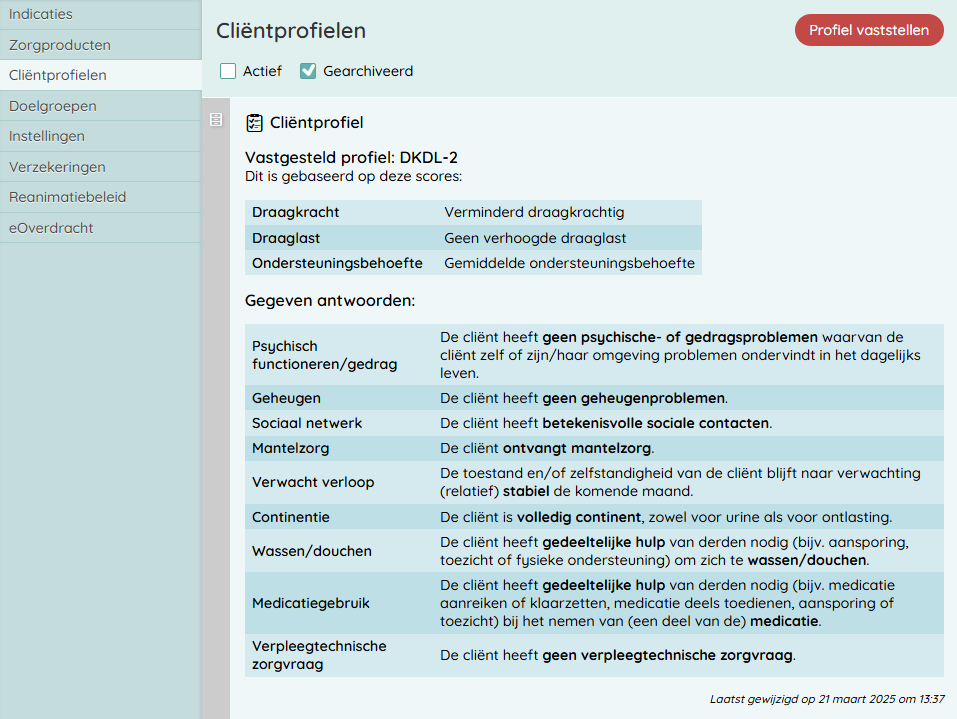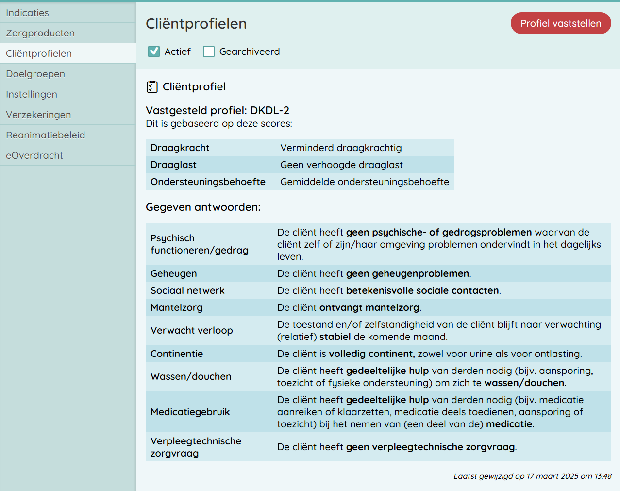 - Onder cliëntprofielen is nu een overzicht van het profiel aanwezig.