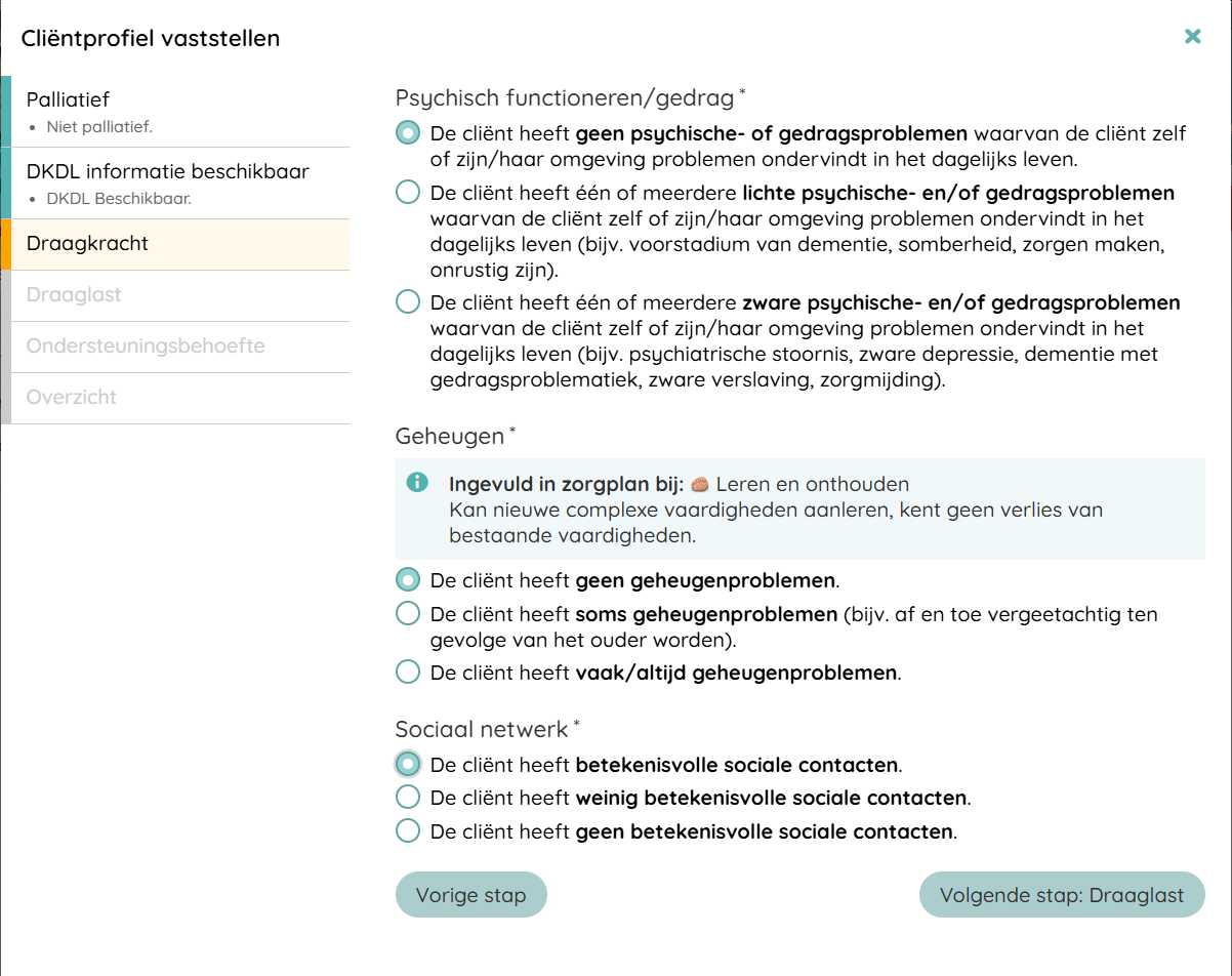 - Geef aan of de DKDL beschikbaar is of niet.En klik op 'Volgende stap: Draagkracht'