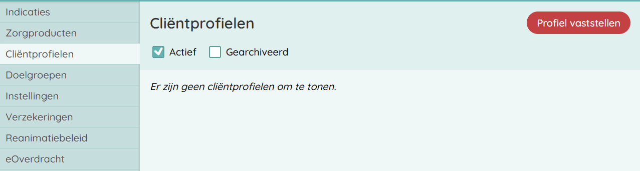 - Het nieuwe cliëntprofiel staat nu als 'Actief' aangevinkt.