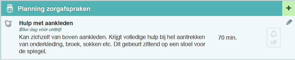 - Klik op de groene '+' (Plus) knop of op de veelvoorkomende activiteit hier 'hulp bij aankleden'.