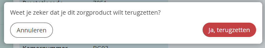 - Klik op het rode bolletje met de drie stippen achter het terug te zetten zorgproduct.